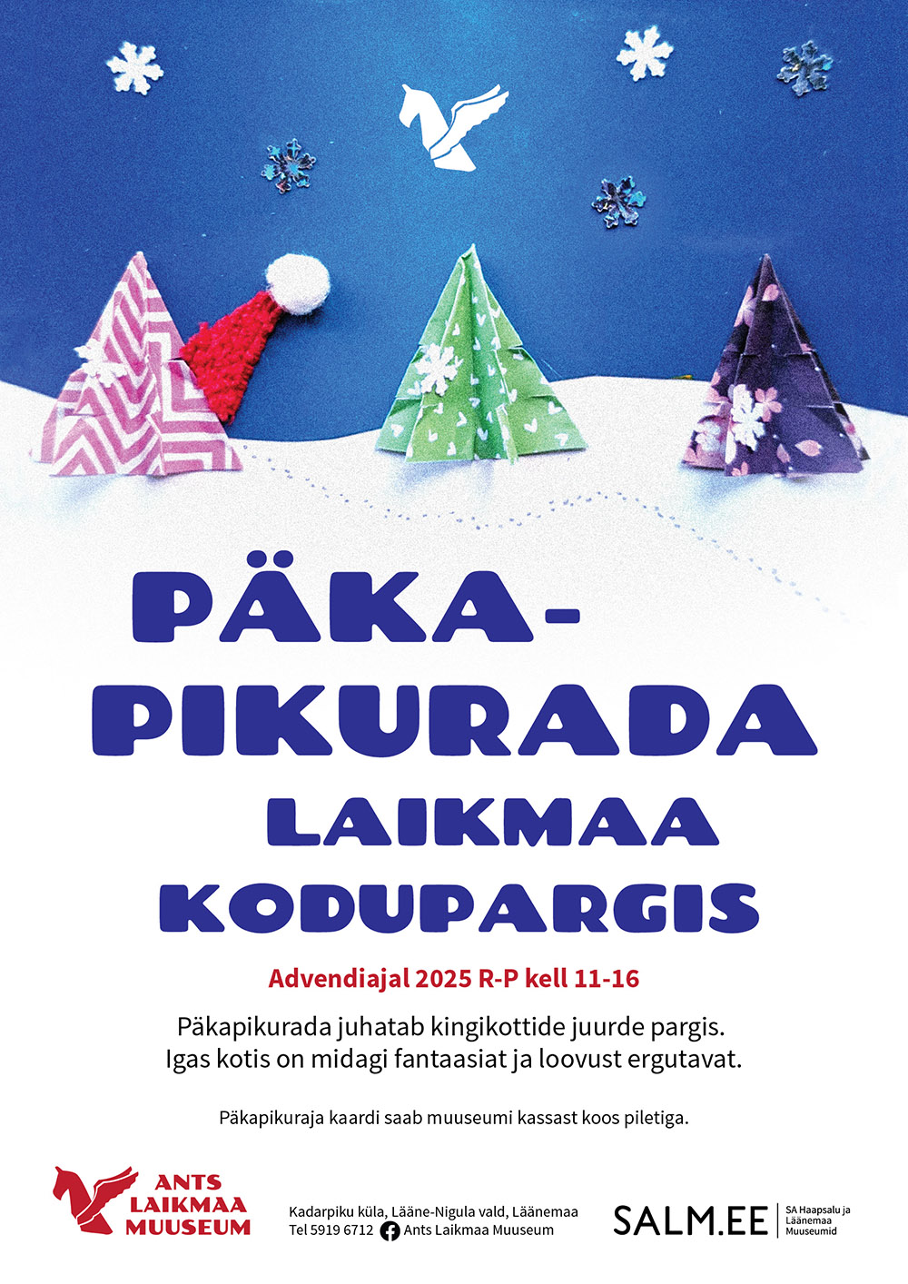 Tule ja veeda koos perega mõnus jõulueelne laupäev Ants Laikmaa muuseumis! Jõulude ettevalmistamise saginas on hea võtta korraks aeg maha, hingata värsket õhku ja häälestada oma mõtted rahulikule pühadeajale.